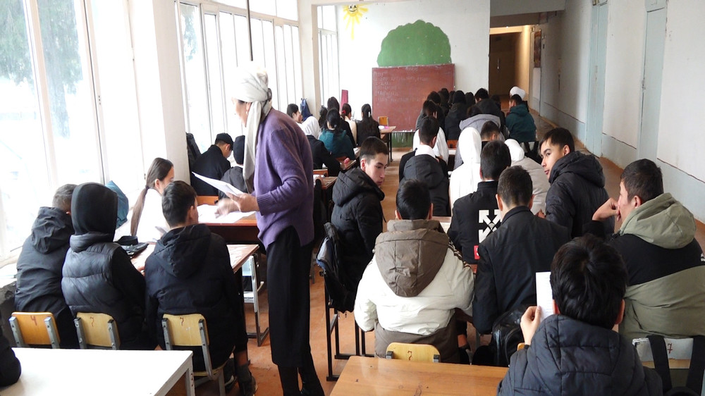 Сузакта 40 жыл мурун курулган мектеп оңдолууда. Окуучулар коридордо окуп жатат