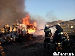 Фото - Бишкек—Ош жолунда май ташыган унаа менен «Хонда Фит» кагышып, 3 адам күйүп кетти